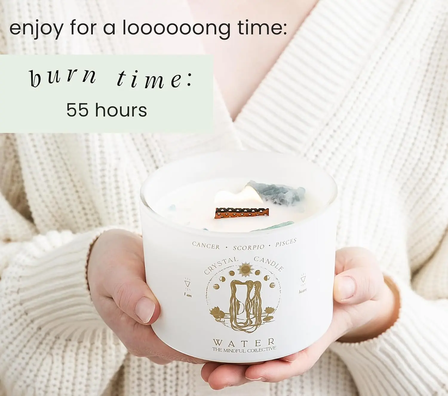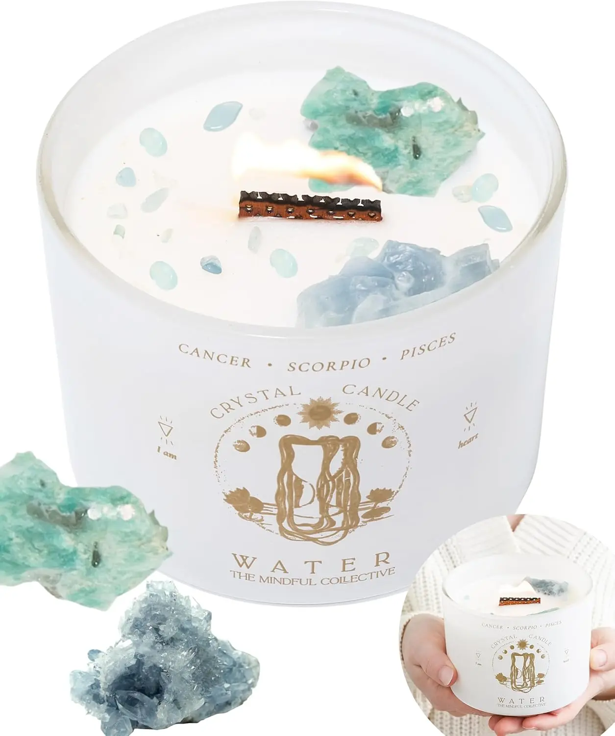 This wooden-core candle embedded with natural crystals is a gentle revolutionary that presses the pause button for you in a fast-paced life. As the wooden wick softly crackles, it feels as if you can hear the whispers of ancient forests and the breathing of the earth’s mineral veins reciting healing poems for you — this is not just a candle, but a portable sanctuary of energy.